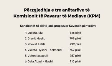 Përzgjedhja e tre anëtarëve të Komisionit të Pavarur të Mediave (KPM)