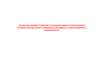 Reagim ndaj Vendimit të ministrit në largim të ambientit dhe planifikimit hapësinor për zhbllokimin e proceduarave për dhënien e leje për ndërtim të hidrocentraleve